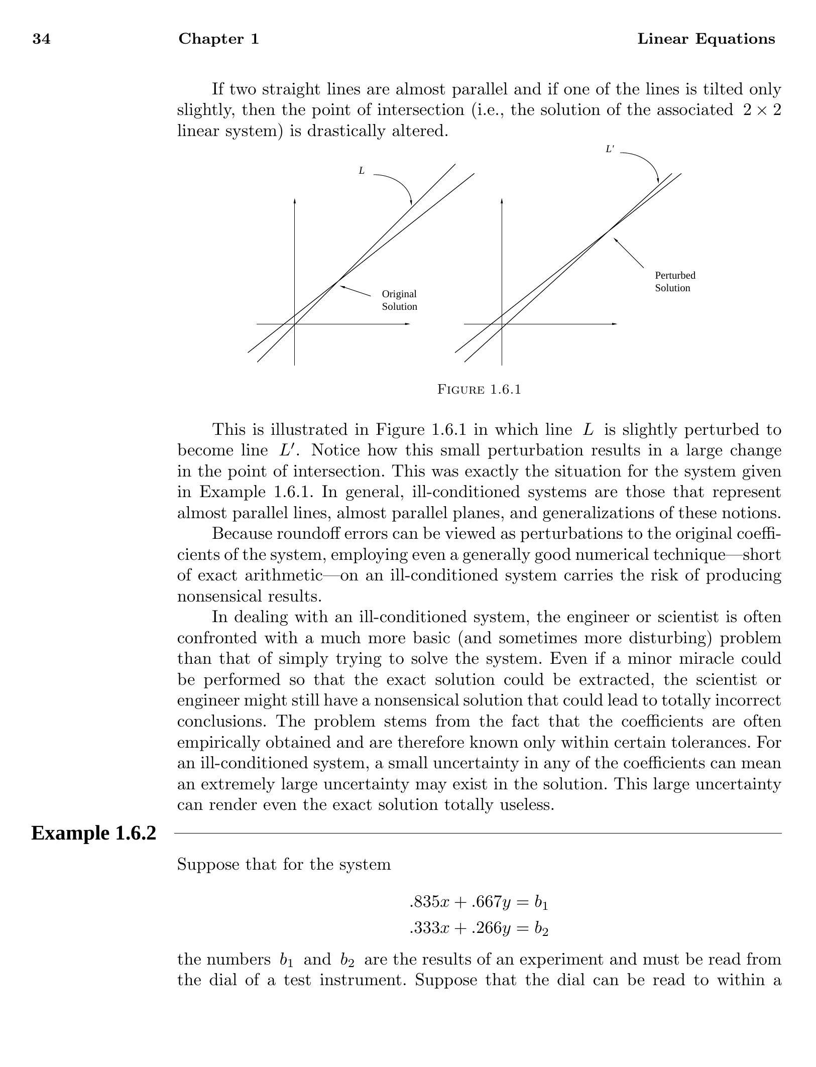 A system of linear equations is said to be ill-conditioned when some small perturbation in the system (in the bs) can produce relatively large changes in the exact solution (in the x’s). Otherwise, the system is said to be well-conditioned.