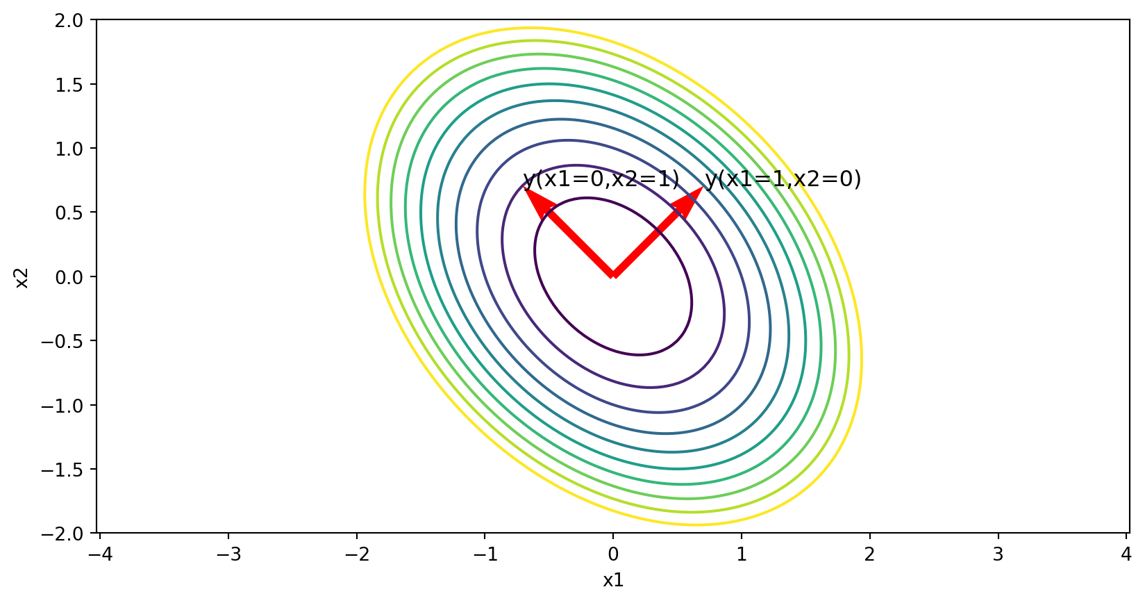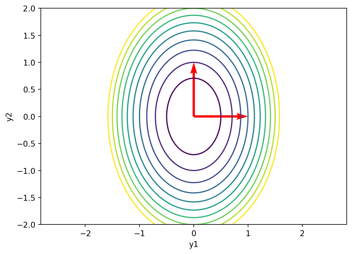 plt.show()In general, we can think of the diagonalization as a rotation of the axes followed by a scaling of the axes.