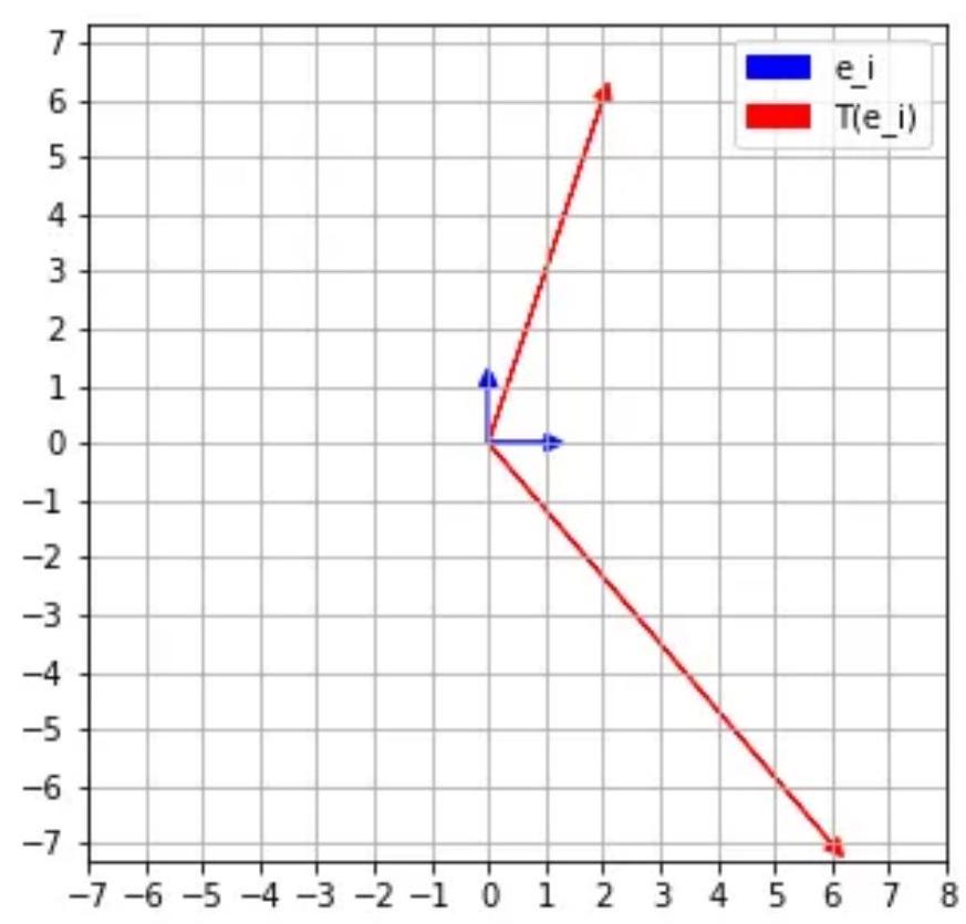 Represents a linear map \mathrm{T}: \mathrm{R}^{2} \rightarrow \mathbf{R}^{2} with respect to the standard basis e_{1}=(1,0) and e_{2}=(0,1).