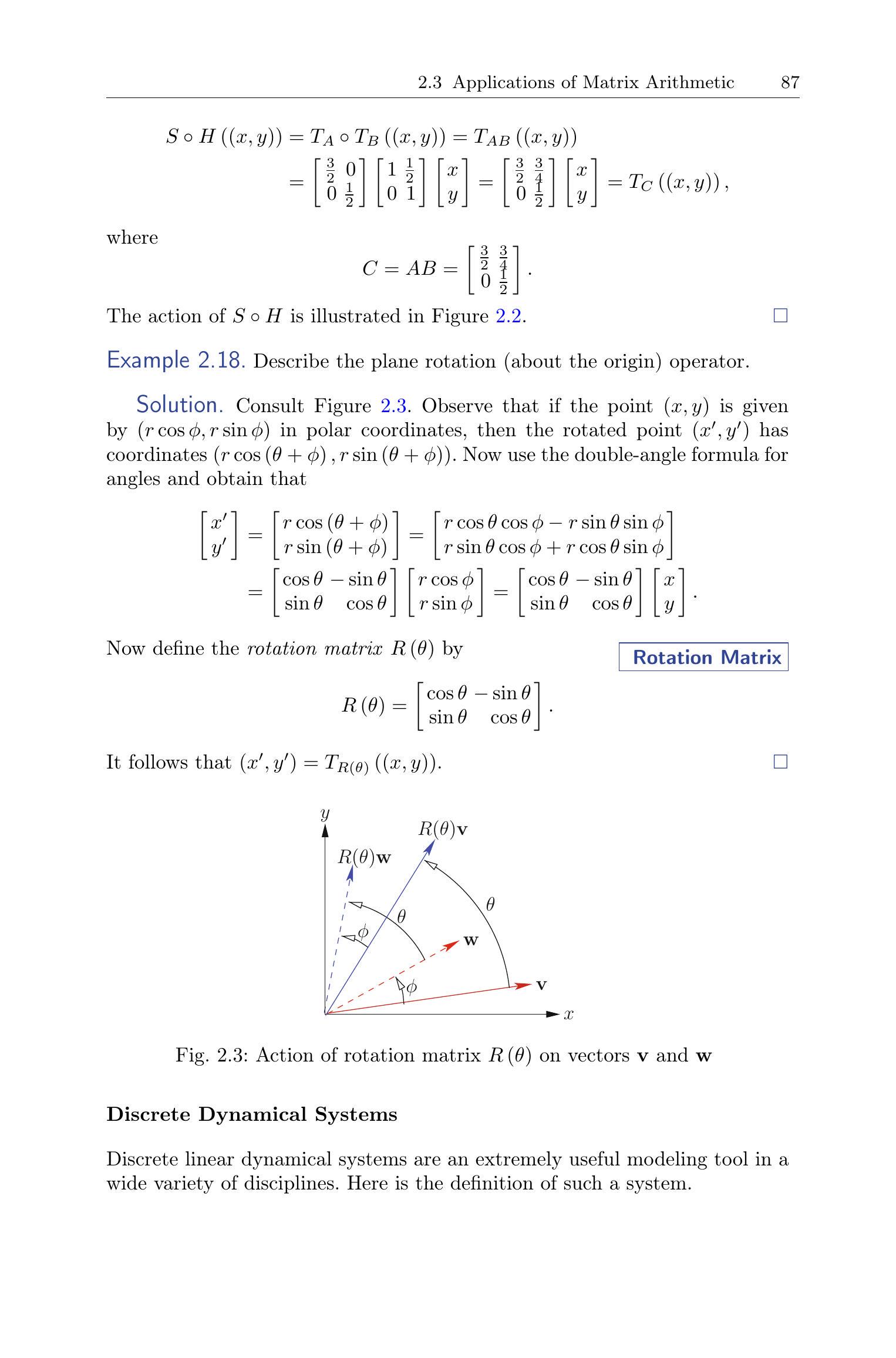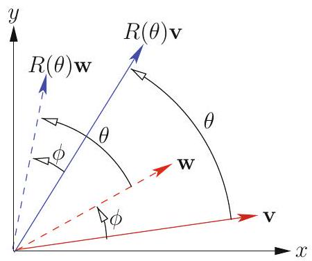 =\left[\begin{array}{rr} \cos \theta &-\sin \theta \\ \sin \theta & \cos \theta \end{array}\right]\left[\begin{array}{l} r \cos \phi \\ r \sin \phi \end{array}\right]=\left[\begin{array}{rr} \cos \theta&-\sin \theta \\ \sin \theta & \cos \theta \end{array}\right]\left[\begin{array}{l} x \\ y \end{array}\right]