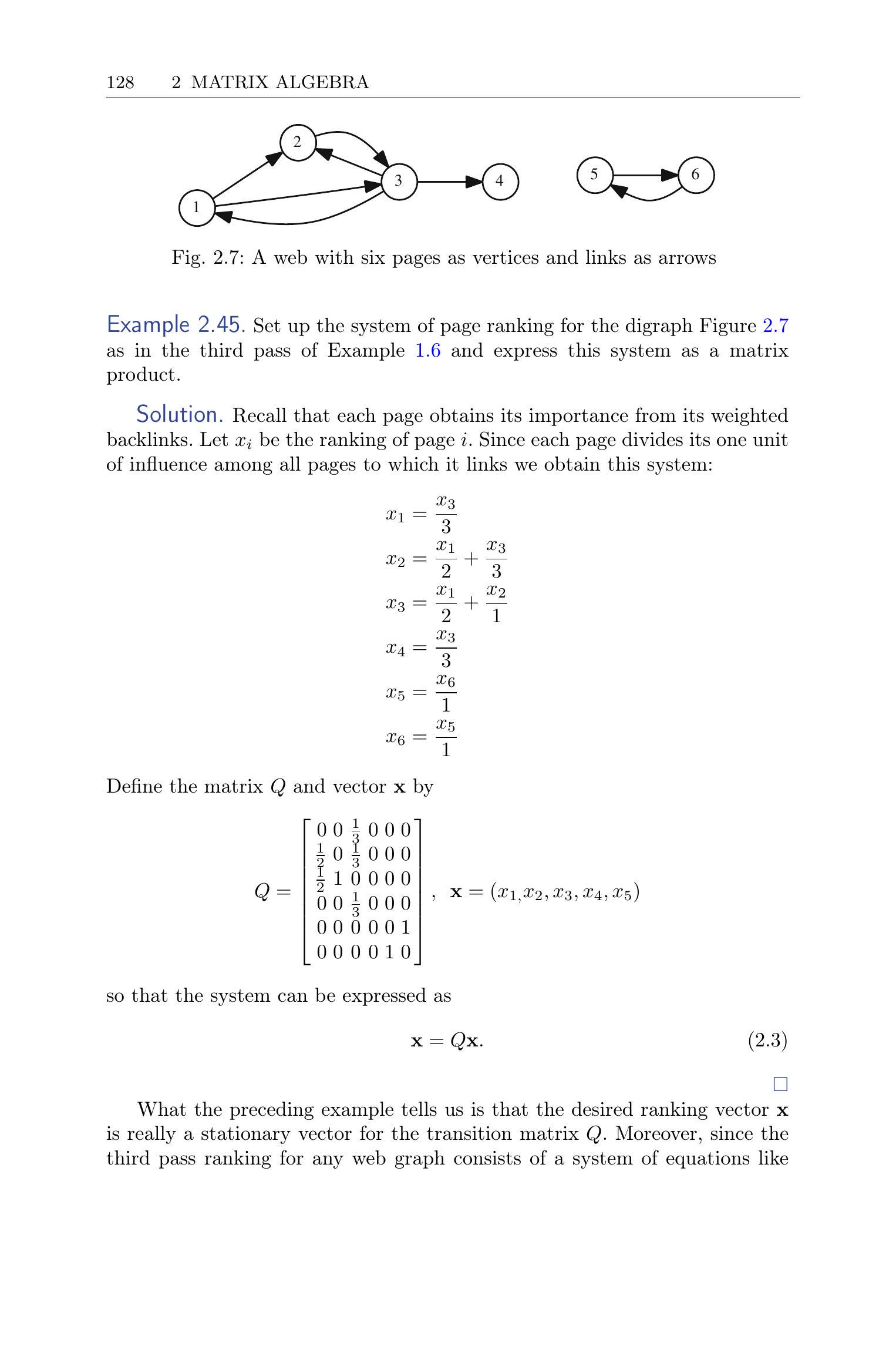 \begin{equation*} (I-\alpha P) \mathbf{x}=(1-\alpha) \mathbf{v} \tag{2.5} \end{equation*}