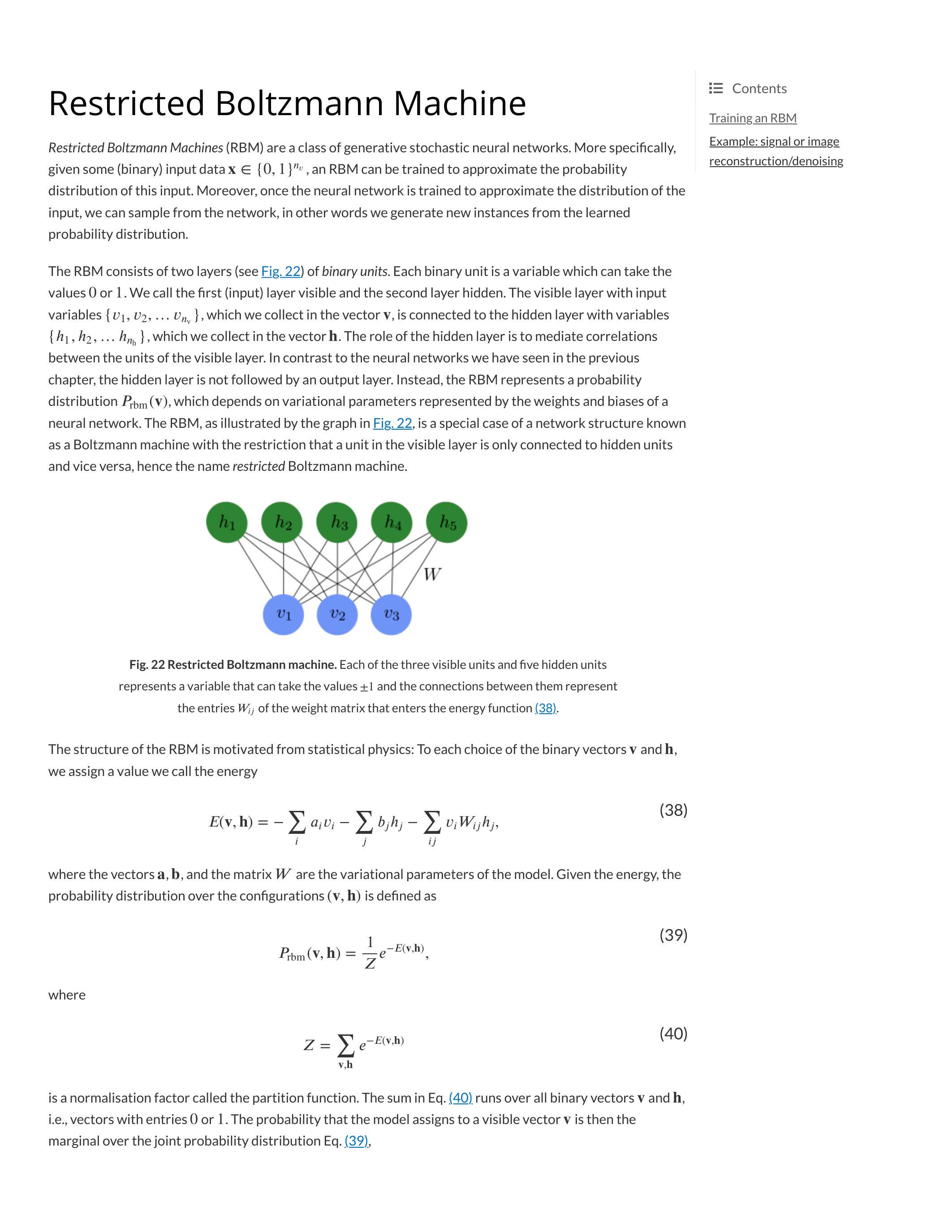 P_{\mathrm{rbm}}(\mathbf{v}, \mathbf{h})=\frac{1}{Z} e^{-E(\mathbf{v}, \mathbf{h})} where Z=\sum_{\mathbf{v}, \mathbf{h}} e^{-E(\mathbf{v}, \mathbf{h})}