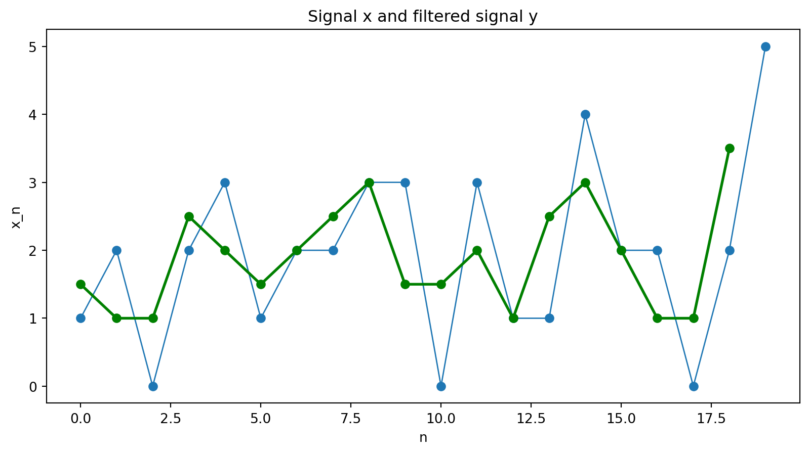 y_n = \tfrac12 (x_{n-1} + x_{n})