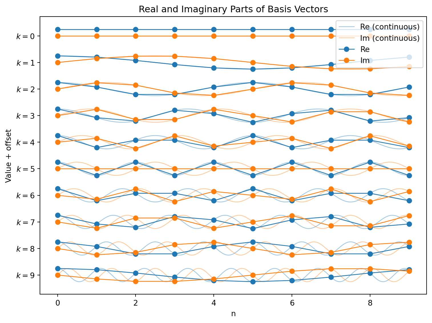 We will have one basis vector, or Fourier mode, for each frequency index k = 0,1,\dots,N-1.